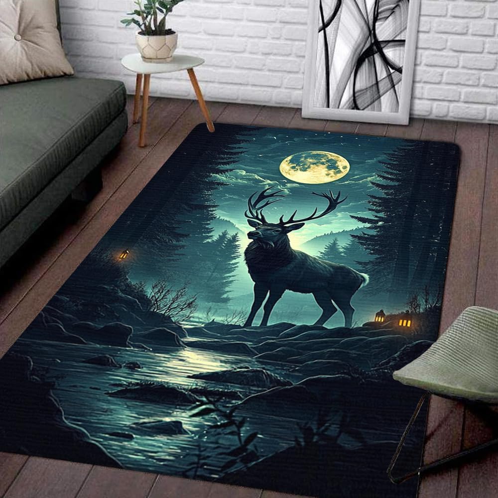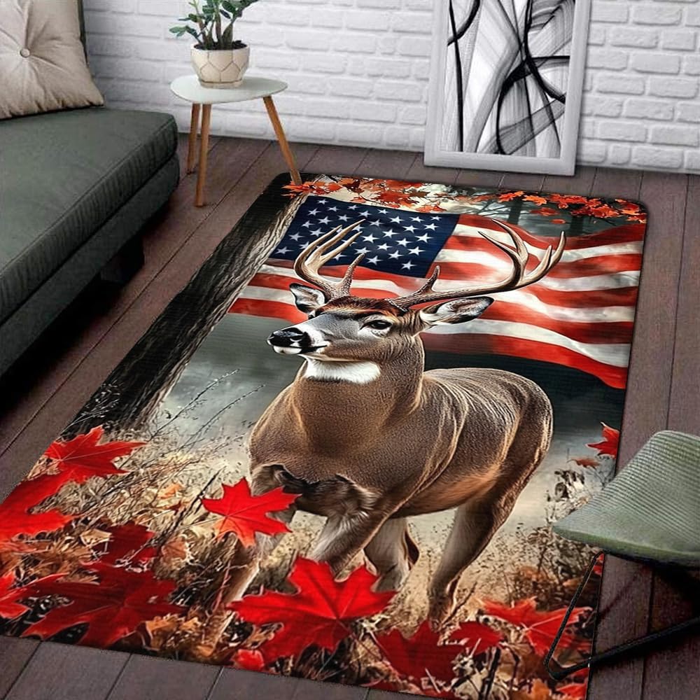 DEER HUNTING AREA RUG FOR HUNTING LOVER, HUNTER GIFTSIf you're looking to enhance the appearance of your room, you should consider this area rug. Vibrant colors and great designs make the room no longer dull and boring. Classic design make this area rug easy to match every room in your home.FeatureMaterialSoft flannel surface. Non-Woven plastic bottom make it anti-slip and with the comfortable memory foam in the middle.Perfect SizeEnjoy this rectangle area rug in 2x3ft/3x5ft/4x6ft/5x8ft. Our area rug can warm and cozy on the feet that also protect your floor very well and naturally dampen noise.Non-Slip BackingPoint plastic non-slip bottom. Keep carpet bottoms dry. Place the mats on a clean, dry, smooth floor, the water under the carpet will make it slip.Multi-purpose- Used as dining room rug, living room rug, bedroom rug, office rug, doormat, entry way rug, study mat, kitchen rug, nursery mat, chair mat, meditation mat, picnic throw rug, etc.- Decorate your home when holiday or themed party. It can decorate your home when Halloween/Christmas/Thanksgiving/Easter, etc.- Perfect gift ideas for housewarming, anniversary, Christmas, wedding, Valentine's Day, etc.Warm TipsFor the convenience of transportation, the package has been rolled up, please don't worry about the crease problem, it will disappear after a few hours, you can buy with confidence.