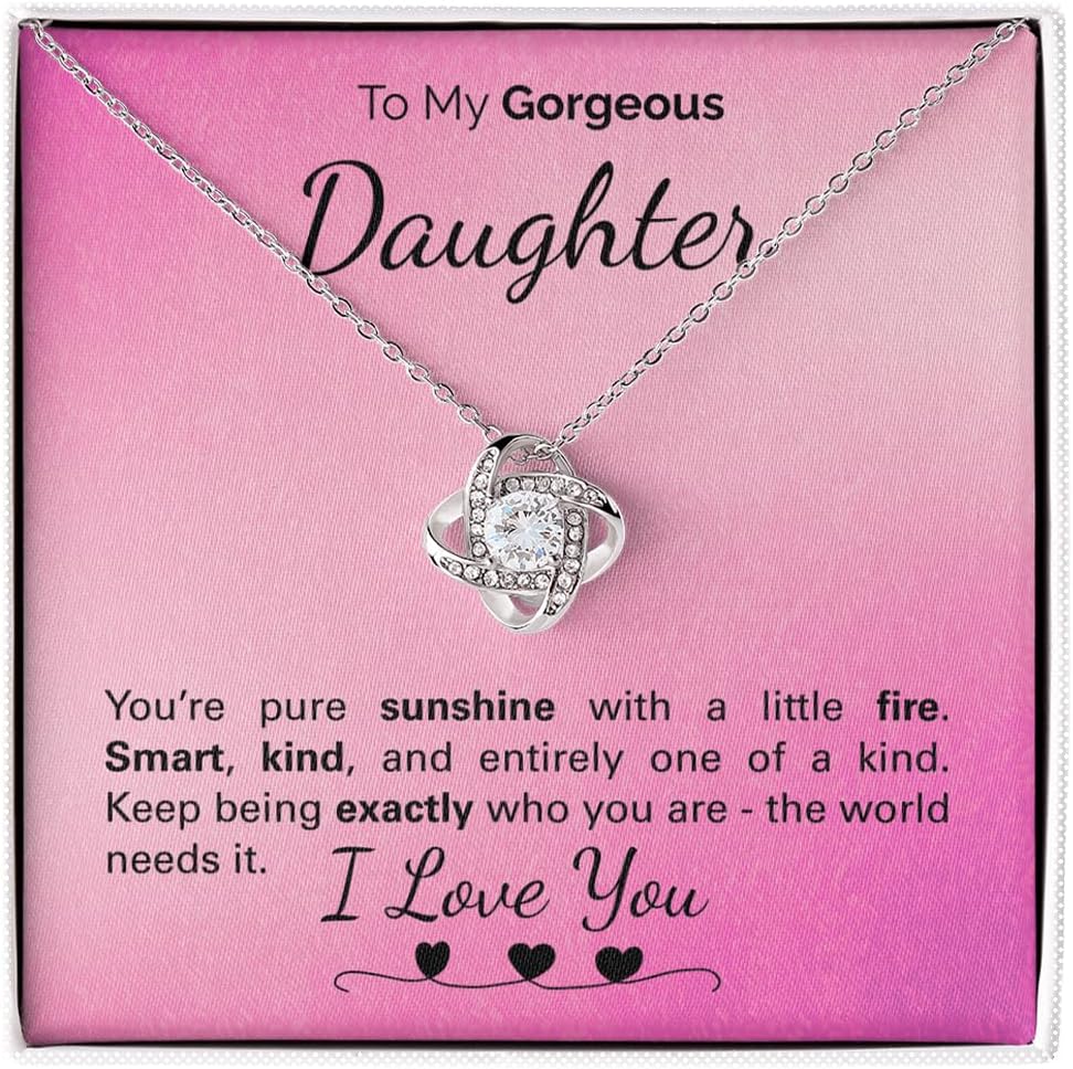 Give your daughter a gift that goes beyond jewelry. This Zahlia necklace with message card is a heartfelt keepsake, perfect for celebrating birthdays, milestones, or simply reminding her she’s loved.Celebrate your daughter’s journey through life’s milestones. Whether she’s graduating, starting her career, or simply celebrating a birthday, this necklace is a heartfelt keepsake she’ll treasure.Specifications: ✔ Gift-ready box (luxury mahogany w/ LED available) ✔ 14k white gold finish over stainless steel ✔ Adjustable 18"–22" chain, lobster clasp ✔ 6.5mm cubic zirconia stone, lead free