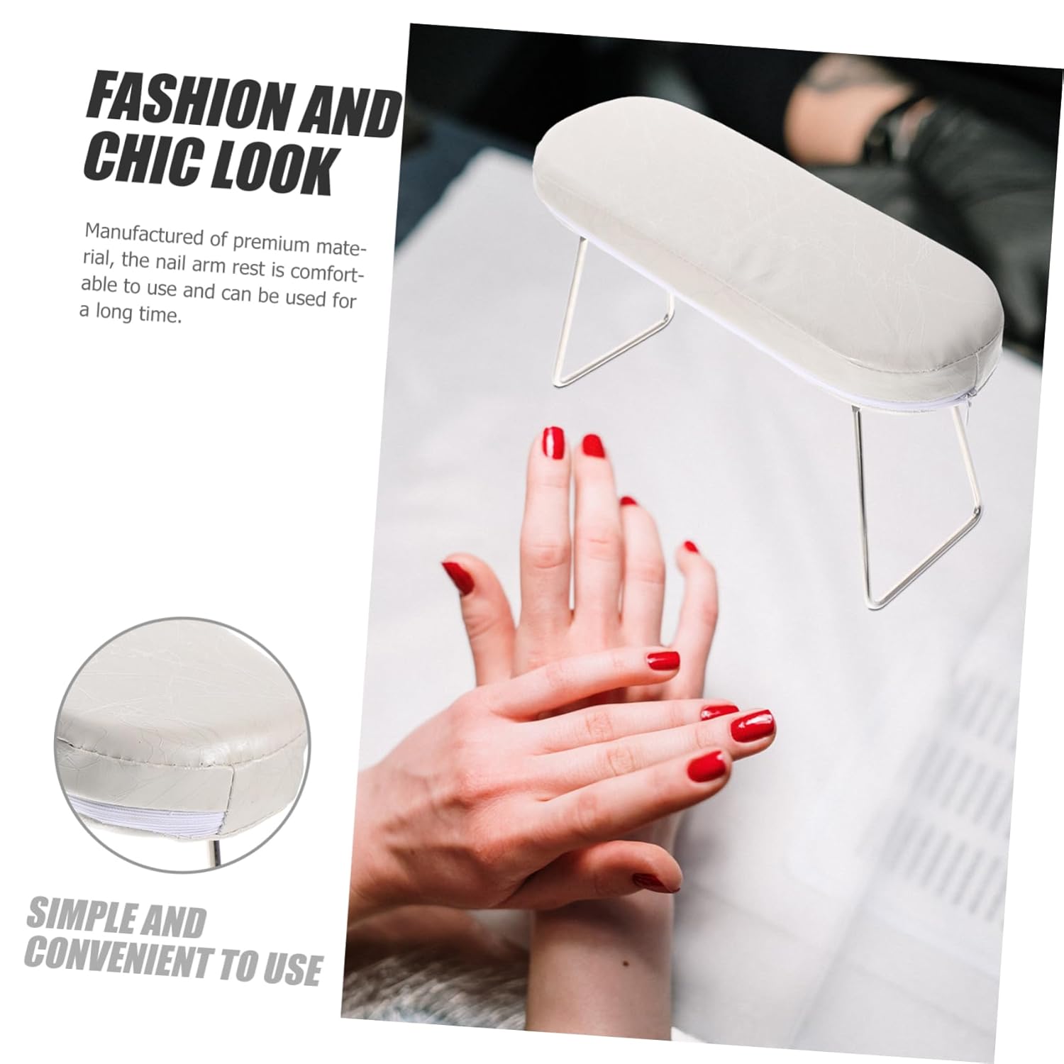 Package Include 1 x Nail Arm Rest Features - Size: 29.00X16.70X9.80cm/11.40X6.56X3.85in Nail Art Rest - Color: Pink Hand Pillow Nail Art -Material:Leather, stainless steel, sponge Hand Cushion Manicure Art - There is enough space under the supple rack of the hand rest that can be used to place the nail tool Nail Art Arm Rests. - The leather surface of the arm rest makes sure that it is easy and convenient to clean and can be used for a long time Nail Art Hand Pillow. - The arm rest can preserve your counter from the manicure products, while hold your clients to steady hands Manicure Accessory. - It has a fashion and chic look, which is simple, beautiful and generous for you to use Hand Pad for Manicure. - Using our pillow can reduce wrist fatigue for your clients to provide a comfortable nail art experience Manicure Art Hand Pillow.Goods Descriptionarm rest for nails It can provide comfort for nail treatment and manicure, holding the hand while doing a long time nail art care.Nail Art Rest Pillow This fashion hand pillow is very professional for the nail art or home use.Nail Art Hand Cushion It is also a present for friends.Nail Art Hand Rest Manufactured of , the nail arm rest is comfortable to use and can be used for a long time