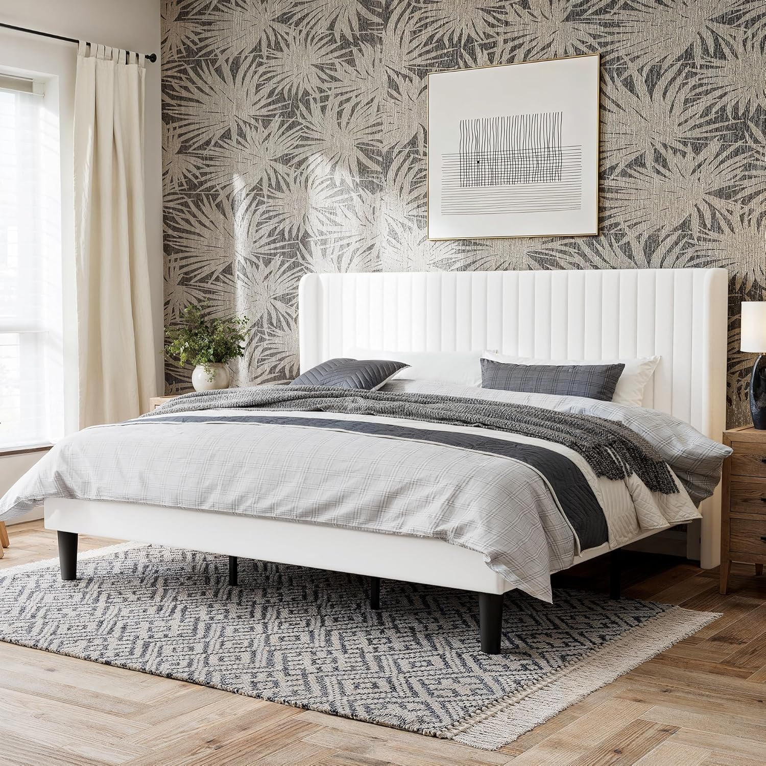 | Other Special Features of the Product | No Box Spring Needed, Squeak Resistant, Upholstered, Vertical Channel Tufted, Wingback Headboard |