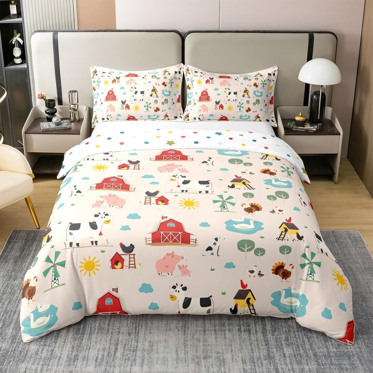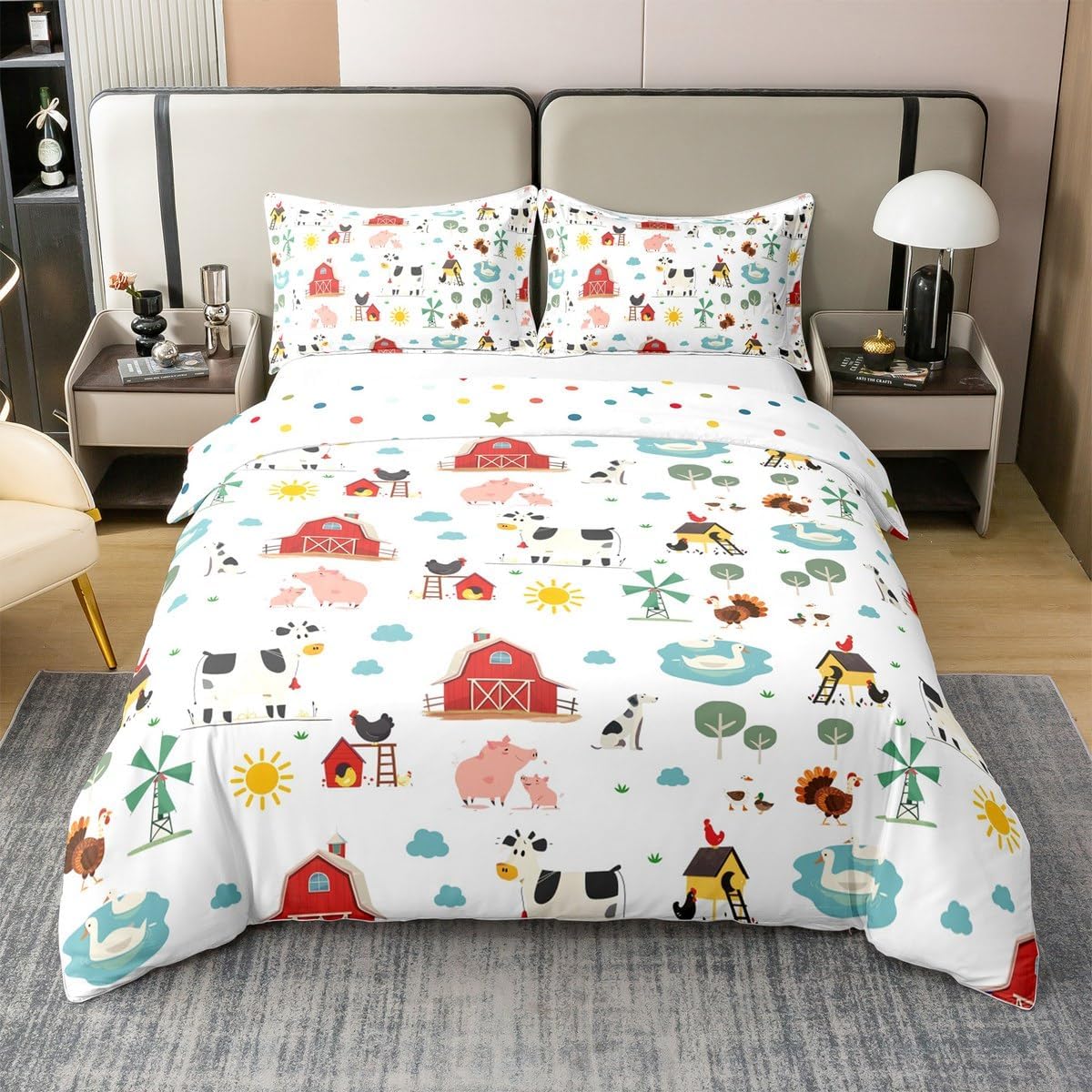 Unique designs: We offer a wide selection of digital printed designs, like farmhouse style, camping theme, gamer theme, animal theme,ocean theme, modern geometric, garden floral for kids, boys, girls; vivid colors and unique designs match well with your all other decor accessories100 Percent cotton fabric is breathable, soft with a high tensile strength which making it feel like you're being gently cuddled when you sleep inside themEasy to care for: Machine wash in cold and dries quick on tumble dry low Range of sizes:Twin size1 Duvet cover: 68"x90"1 Pillow sham:20"x30" Full size1 Duvet cover: 79"x91"2 Pillow sham: 20"x30" Queen size1 Duvet cover: 90" x 90"2 Pillow sham: 20"x30" King size1 Duvet cover: 104" x 90"2 Pillow sham: 20" x 36"