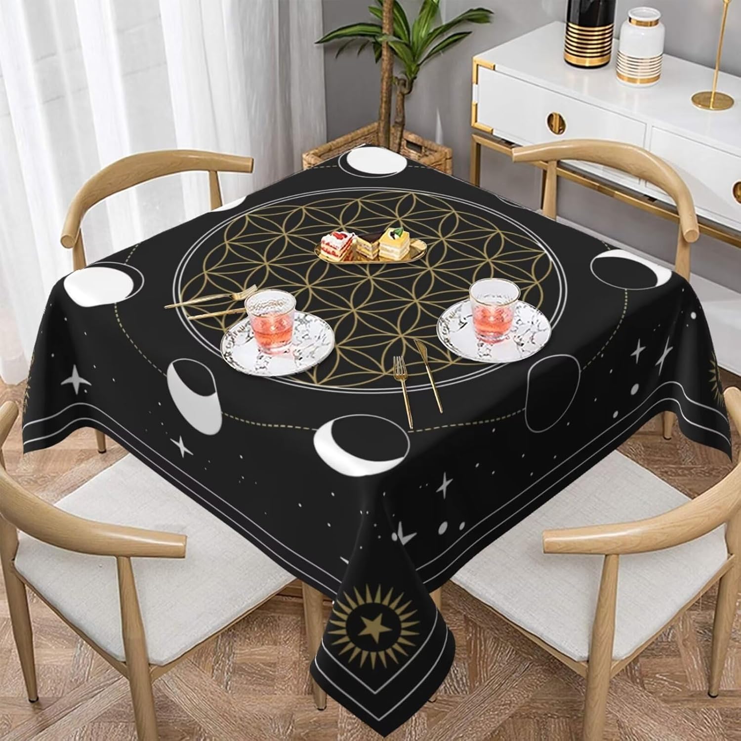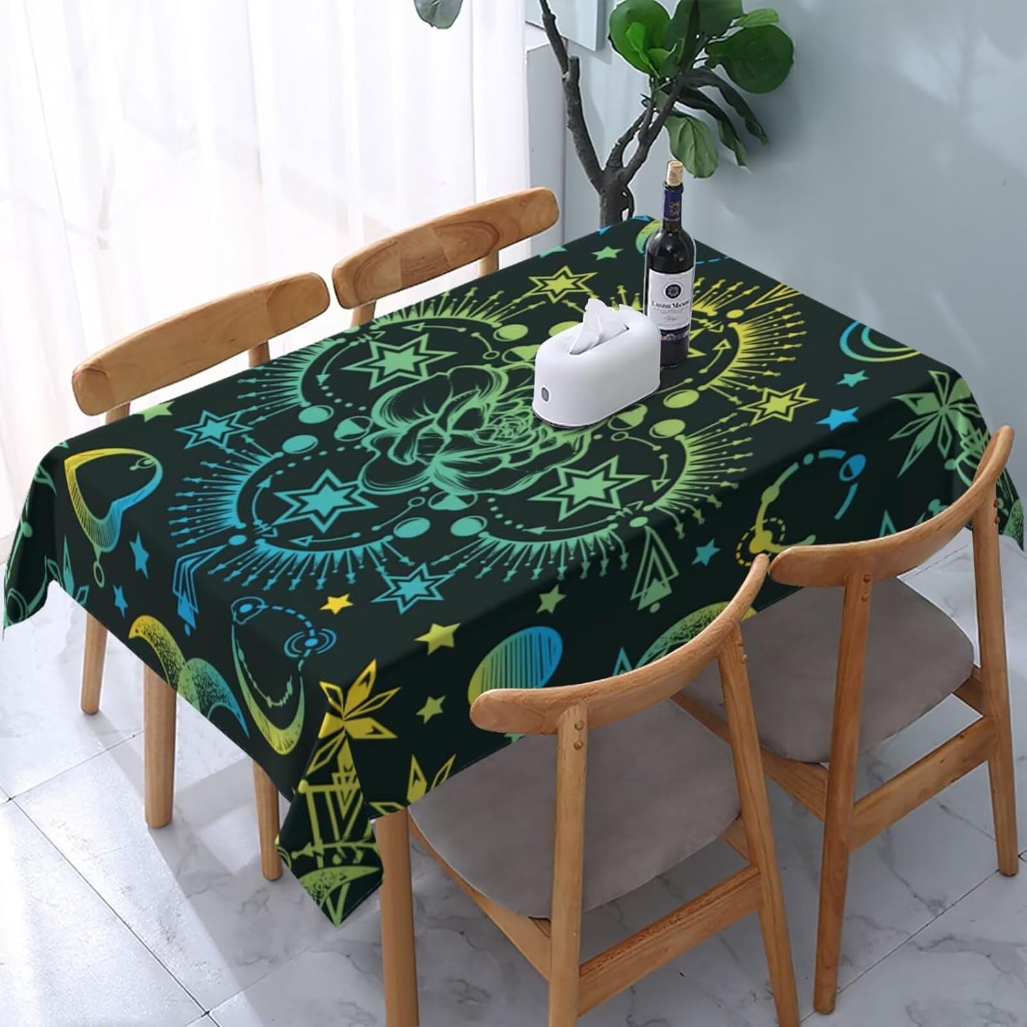 ✿Product Design:The unique printing design is very suitable for parties or dinners they are decorative easy to use and beautiful stylishly they will add some mystery to your dining table and room decoration!Matches delicacies and create unique style for your dining room, suitable for various dining scenes for indoor & ourdoor table for everyday use with family birthday, holiday gatherings, bbq, party, etcMachine wash in cold water and tumble dry.hand wash best. Do Not Bleach.The crease after wash can be easily ironed away. And it still remains excellent waterproof effect when reusing.Due to the many variations in monitors and browsers, color samples may appear slightly different than actual product.
