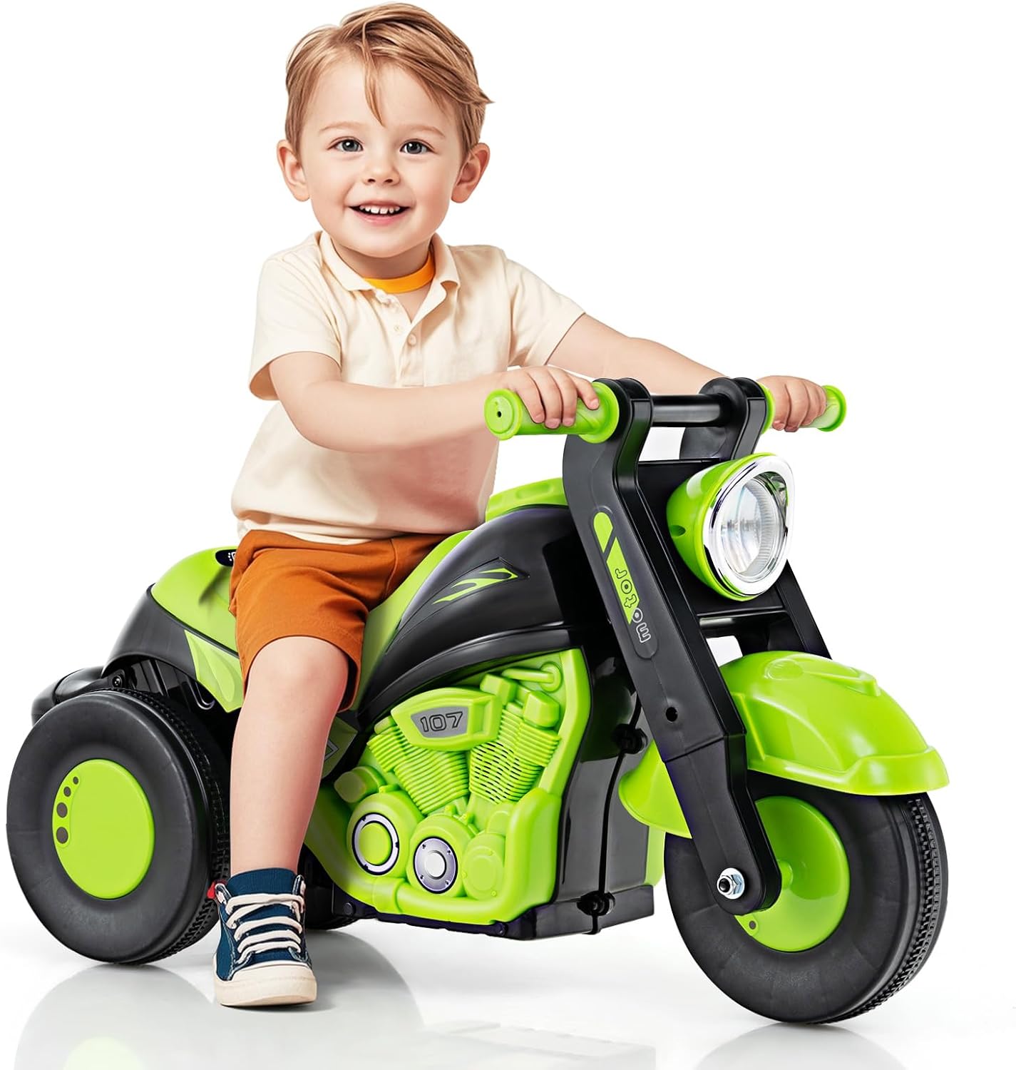 Why do you choose OLAKIDS sliding car?The automatic bubble function of OLAKIDS ride on toys for toddler is also the most favorite function of children, which can let children immerse in the world of bubbles. In addition, child can control the walker by sliding, and do not need to charge to play. This sliding car features music for added fun. Are you concerned about the safe driving features of this bubble car? 3- Wear-resistant wheels form an ultra-stable triangular structure that ensures good balance and safety. This practical motorcycle will be a great gift for children Features:Exercise children's balance, coordination and sense of directionPlay immediately without chargingWear-resistant wheels suitable for various roadsBubbles can be sprayed automatically for added funDesign with stable structure to ensure the safety of the kidsSuitable for both indoor and outdoor playBubble work with musicMax weight capacity of 66lbsMade of kid-friendly PP material Specification:Color: Black, Green, Pink, Beige, Red, BeigeMaterial: PPNet Weight: 8 LbsWeight Capacity: 66 LbsSuitable Age: 3-6 YearsSeat Height: 10”Carton Size: 90mlDimension of Seat: 10.5” x 5”Overall Dimension: 31.5” x 13” x 16.5”(L x W x H) Package includes:1 x Instruction1 x Kids Sliding Car