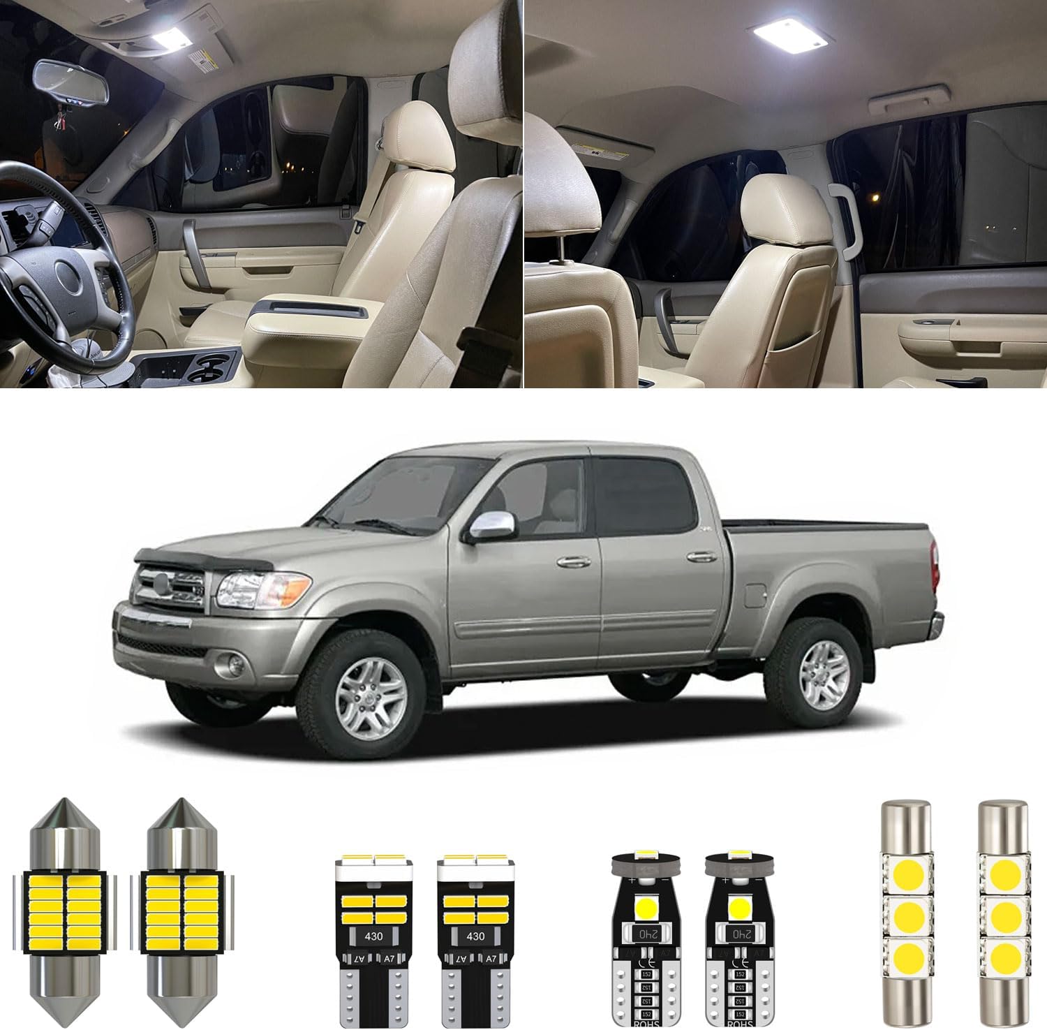Xpismii Super Bright 6000K White LED Interior Light Kit Package Replacement for Toyota Tundra Extended Access Cab 2000-2006 All Configurations This Tundra interior LED light kit includes all the LEDs you need to replace the interior incandescent bulbs. It has a placement diagram inside that tells you what bulb goes where. It also comes with a trim tool to safely replace your factory bulbs without cracking or breaking your vehicle's interior trim parts. And please contact us if you have no idea how to replace these lights, we would send you the step-by-step installation video. Specifications: Color: 6000K white Brightness: 200 lumens per bulb Operating Voltage: 9-16V DC Connector(s): OEM-Size Plug and Play Lifespan: 50,000+ working hours Dimmable: Yes DOT Approved: Yes Fitment: Application: Map Lights, Dome Lights, Footwell Lights, Glove Box Lights, Door Lights, Cargo Lights, License Plate Lights.(11 pieces of LED bulbs) Make and Model: Compatible with Toyota Tundra Extended/Access Cab Year Range: 2000, 2001, 2002, 2003, 2004, 2005, 2006 Compatibility: No electrical issues (tested and confirmed) What's Included: In the Package: 11x super bright Xpismii LED bulbs, 1x placement diagram, 1x install tool Warranty: 2 year warranty Note: These LEDs on the product images are only sample photos, you will get bulbs specific to your vehicle.